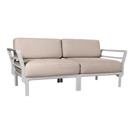 Divano lounge 2 posti Maximo bianco con set di cuscini bianco sale, perfetto anche per un uso all'esterno.